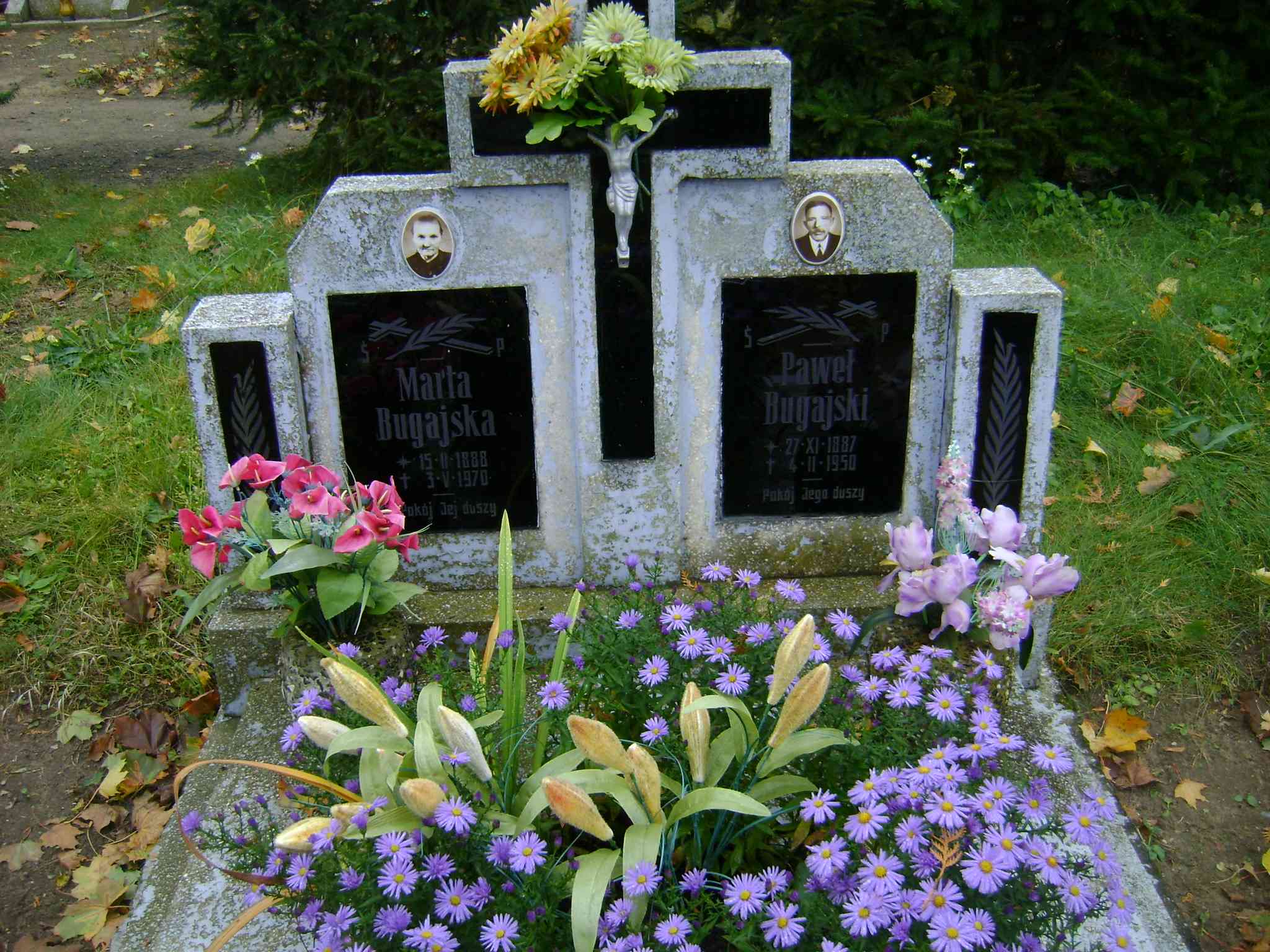 Grób: II.1.20 Bugajska Marta ur.:15.02.1888 zm.:03.05.1970 Bugajski Paweł ur.:27.12.1887 zm.:04.02.1950 |
