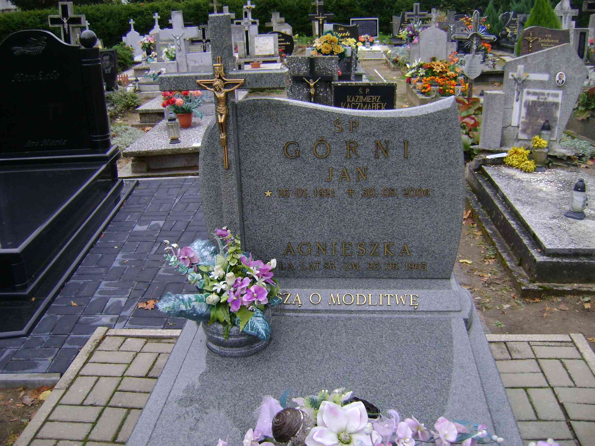 Grób: II.10.9 Górny Jan ur.:23.01.1921 zm.:30.08.2006 Górna Agnieszka ur.:… zm.:25.06.1965 |