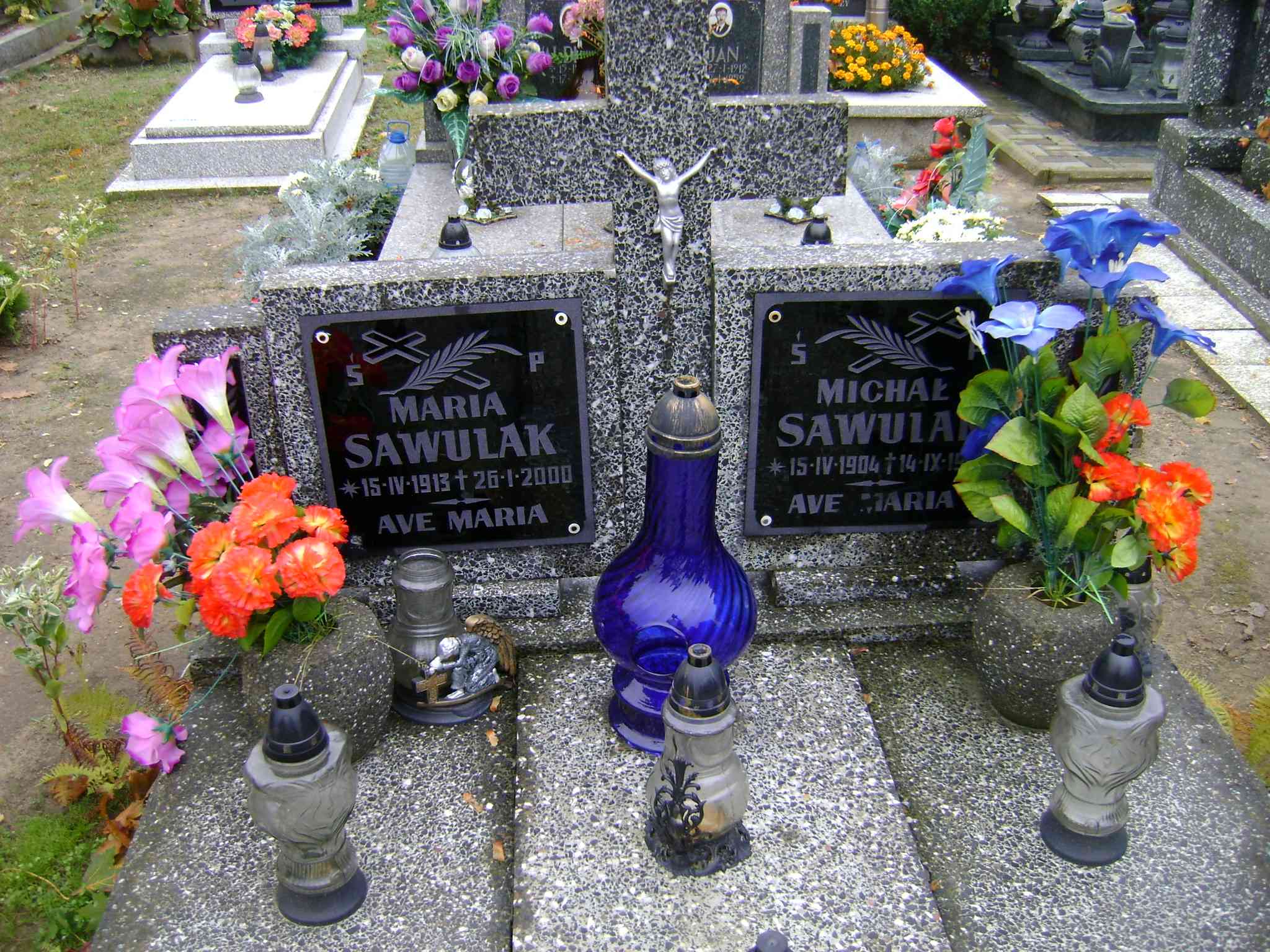 Grób: II.6.11 Sawulak Maria ur.:15.04.1913 zm.:26.01.2000 Sawulak Michał ur.:15.04.1904 zm.:14.09.1959 |