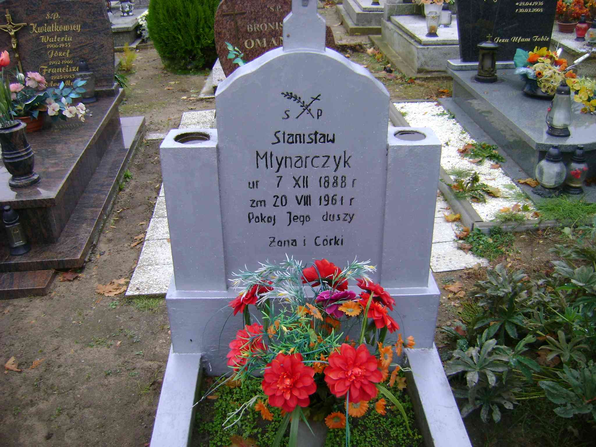 Grób: II.8.12 Młynarczyk Stanisław ur.:07.12.1888 zm.:20.08.1961 |