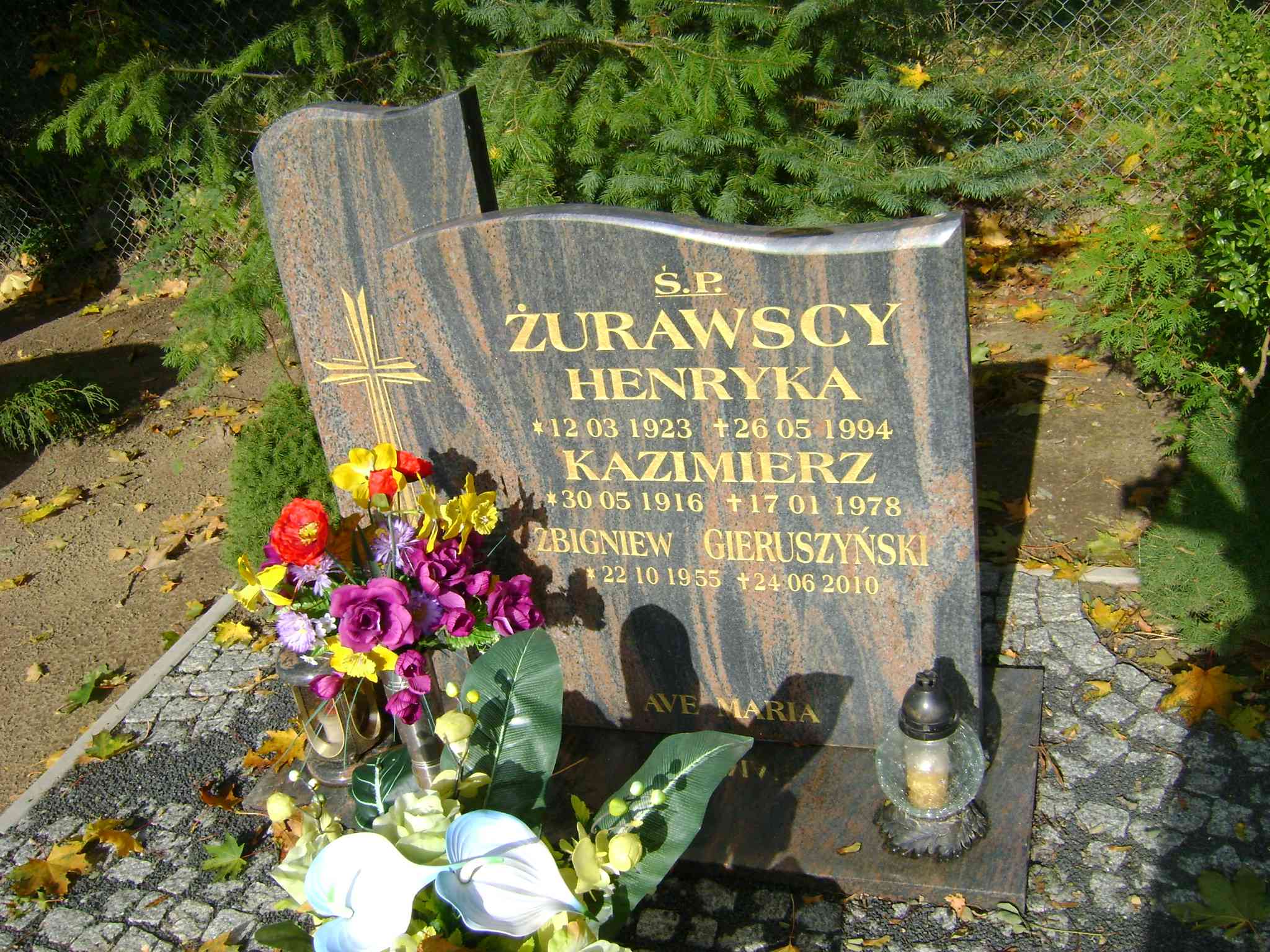 Grób: IIIa.1.16 Gieruszyński Zbigniew ur.:22.10.1955 zm.:24.06.2010 Żurawska Henryka ur.:12.03.1923 zm.:26.05.1994 Żurawski Kazimierz ur.:30.05.1916 zm.:17.01.1978 |