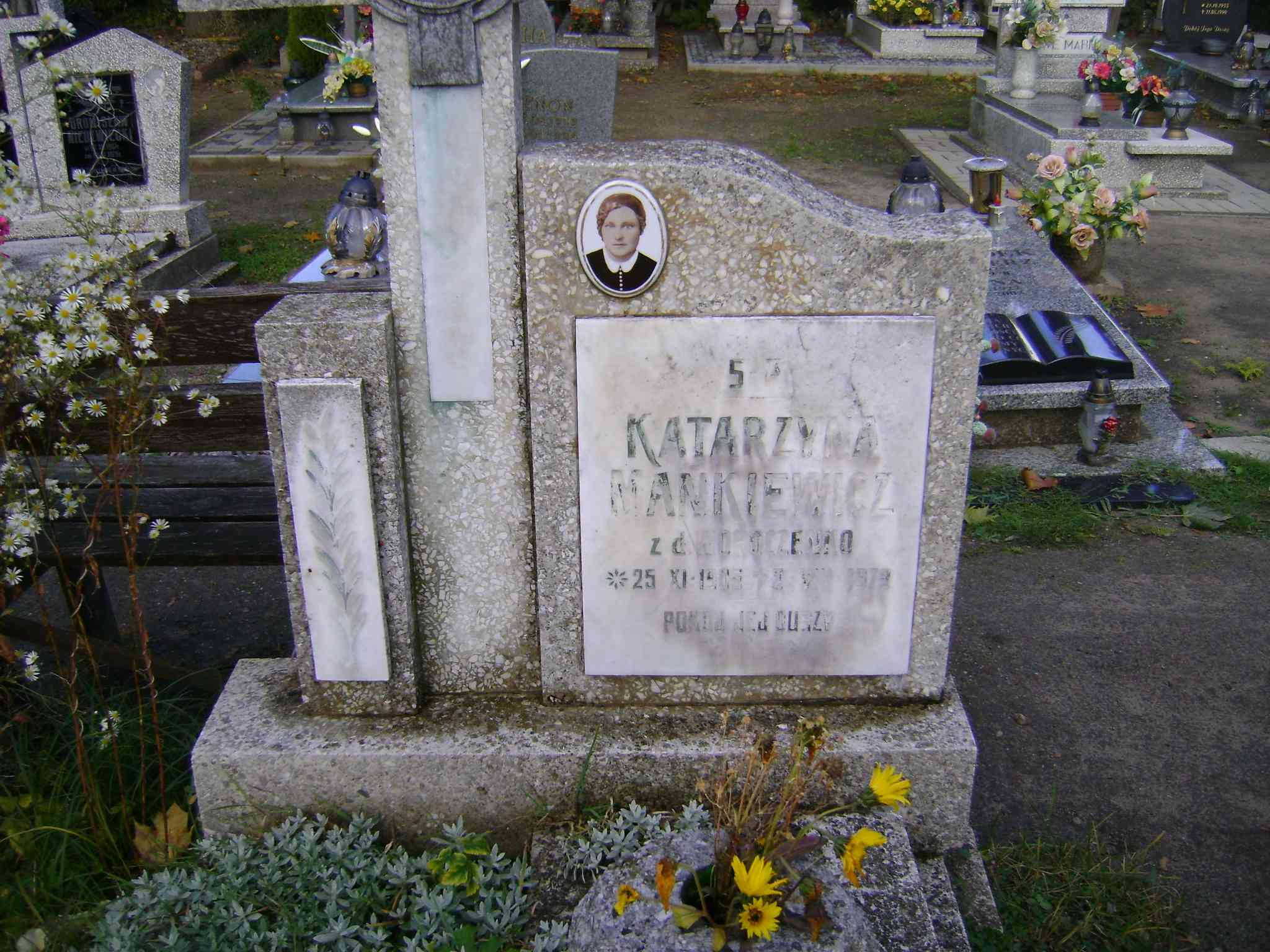 Grób: IIIa.5.24 Mańkiewicz Katarzyna ur.:25.11.1905 zm.:02.08.1973 Mańkiewicz Feliksa ur.:19.05.1929r. zm.:04.12.2014r. |
