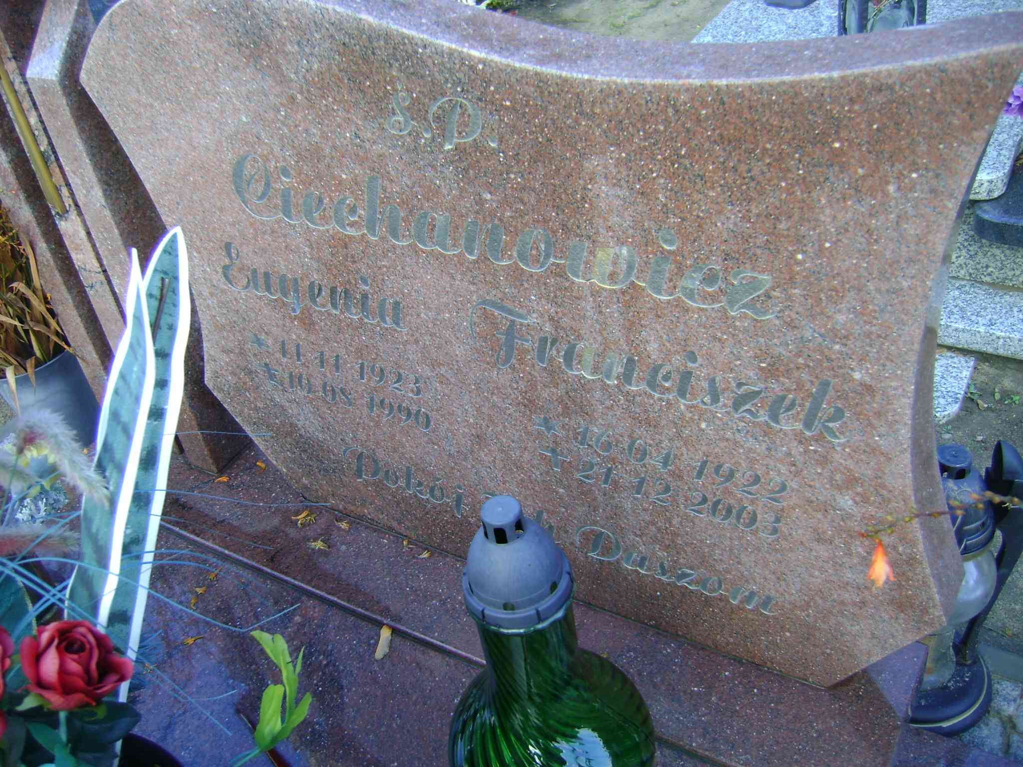 Grób: IIIa.6.11 Ciechanowicz Franciszek ur.:16.04.1922 zm.:21.12.2003 Ciechanowicz Eugenia ur.:11.11.1923 zm.:10.08.1990 |