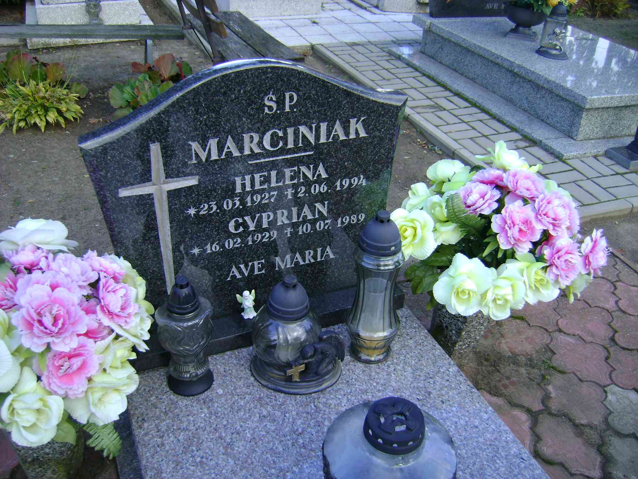 Grób: IIIa.6.17 Marciniak Helena ur.:23.03.1927 zm.:02.06.1994 Marciniak Cyprian ur.:16.02.1929 zm.:10.07.1989 |