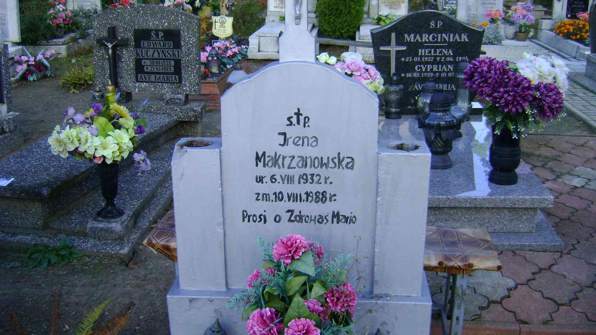 Grób: IIIa.7.17 Makrzanowska Irena ur.:06.08.1932 zm.:10.08.1988 |
