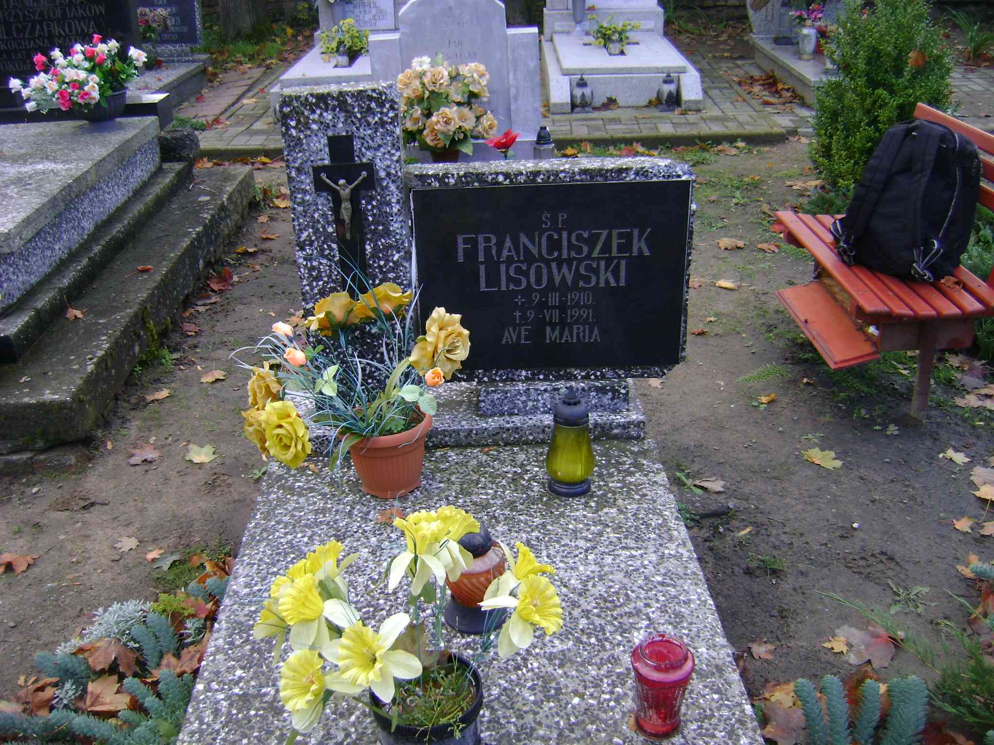 Grób: IV.3.10 Lisowski Franciszek ur.:09.03.1910 zm.:09.07.1991 Lisowska - Miszkin Stanisława ur.:03.01.1922 zm.:12.12.2014 |
