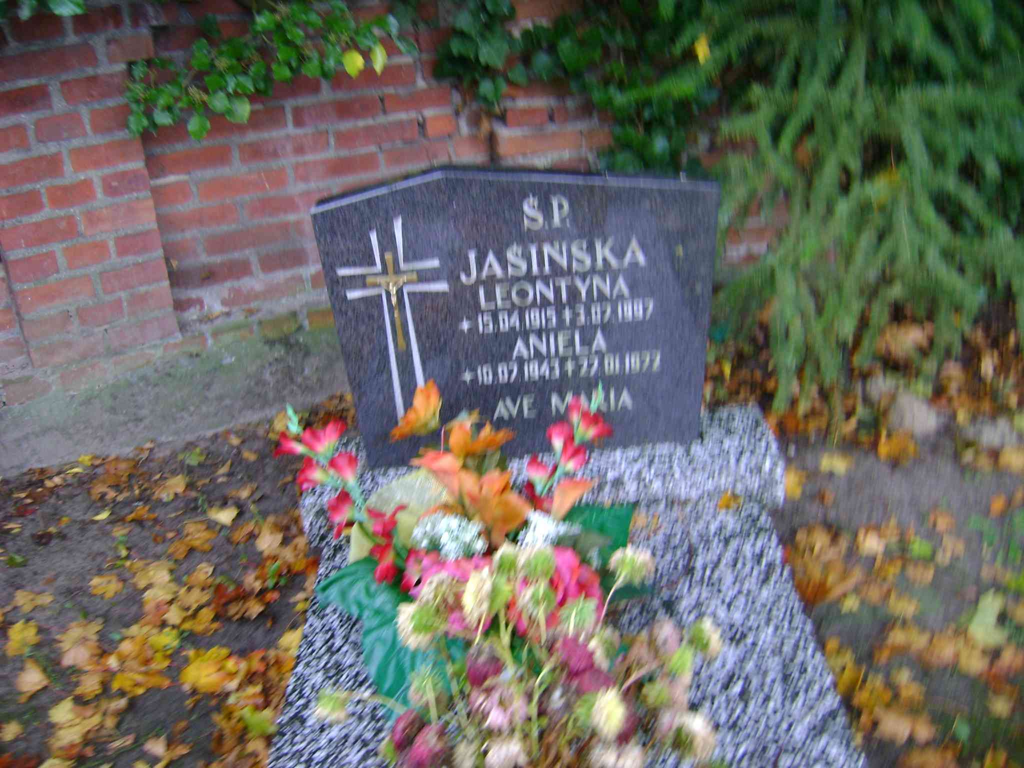 Grób: IVa.1.1 Jaśińska Leontyna ur.:15.04.1915 zm.:03.07.1997 || Jaśińska Aniela ur.:10.07.1943 zm.:22.01.1972 |