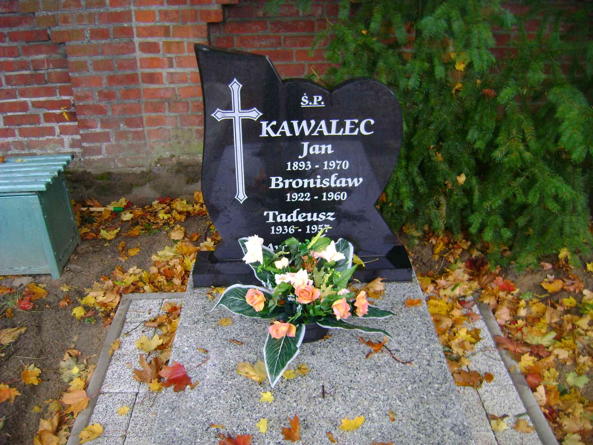 Grób: IVa.1.12 Kawalec Jan ur.:1893 zm.:1970 Kawalec Bronisław ur.:1922 zm.:1960 Kawalec Tadeusz ur.:1936 zm.:1957 |