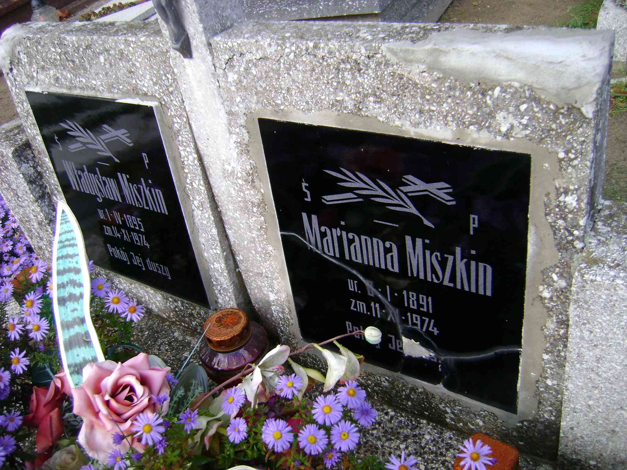 Grób: Ic.3.15 Miszkin Marianna ur.:08.01.1891 zm.:11.11.1974 Miszkin Władysław ur.:01.04.1895 zm.:14.11.1974 |