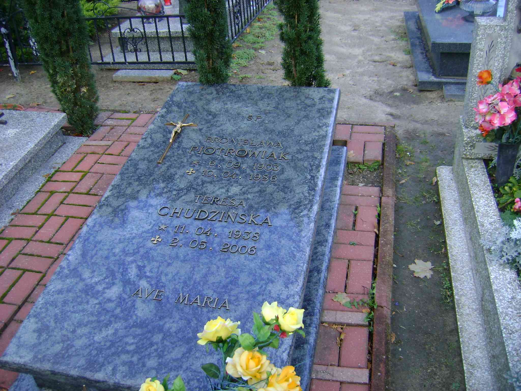 Grób: Ic.5.16 Chudzińska Teresa ur.:11.04.1938 zm.:02.05.2006 Piotrkowiak Bronisław ur.:06.09.1903 zm.:10.04.1986 |
