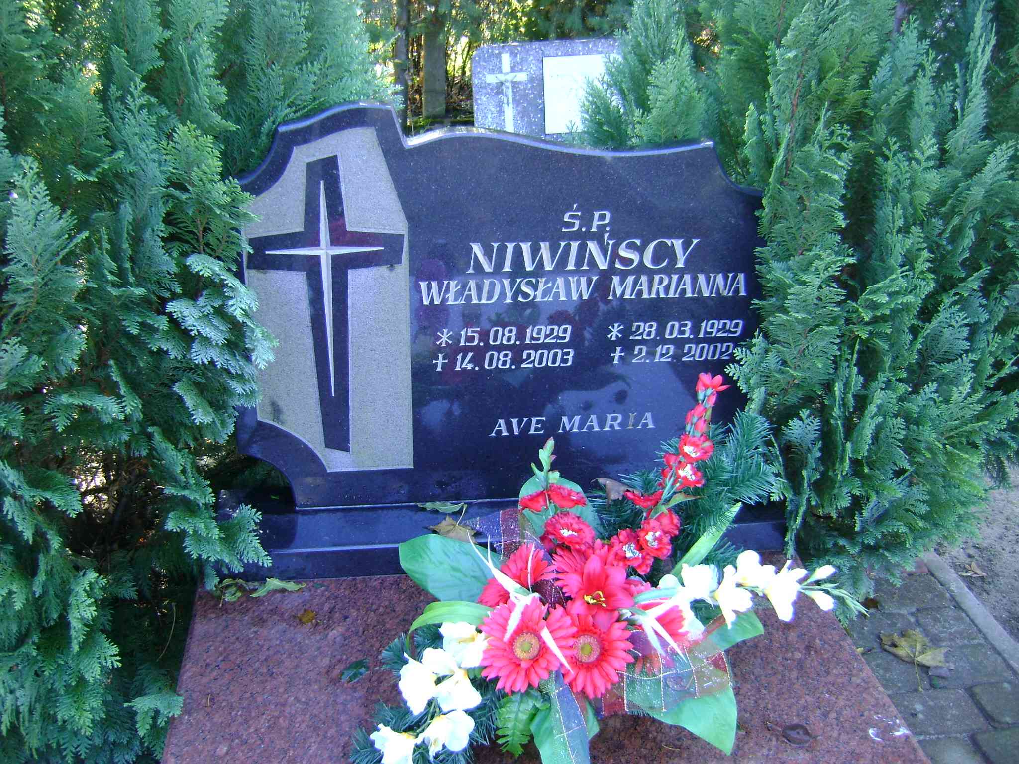 Grób: VIa.2.8 Niwińska Marianna ur.:28.03.1929 zm.:02.12.2002 Niwiński Władysław ur.:15.08.1929 zm.:14.08.2003 |
