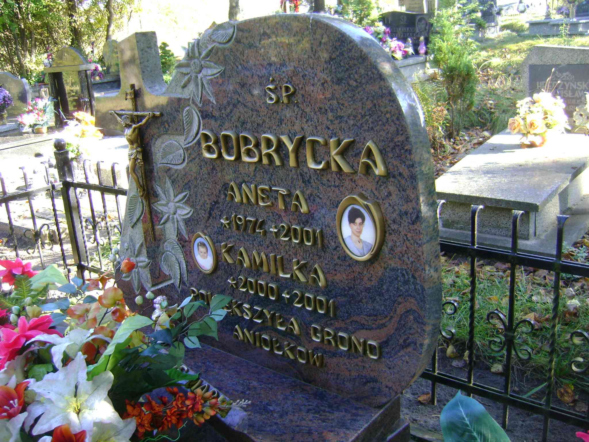 Grób: II.5.8 Bobrycka Aneta Katarzyna ur.:24.02.1974 zm.:23.03.2001 Bobrycka Kamilka ur.:2000 zm.:2001 II.2.2 ![]() ![]() ![]() |