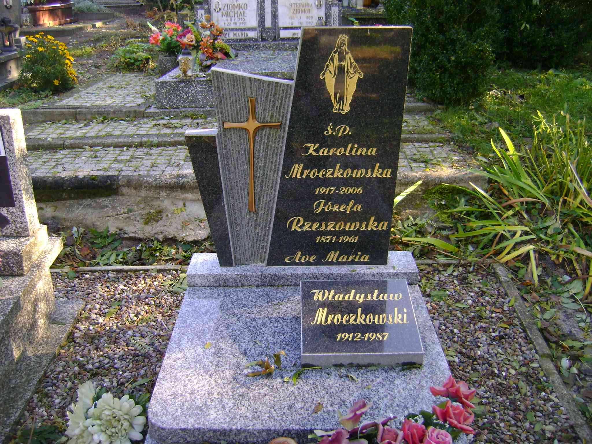 Grób: III.4.8 Mroczkowska Karolina ur.:1917 zm.:2006 Mroczkowski Stanisław ur.:01.11.1919 zm.:31.01.1982 Rzeszowska Józefa ur.:1871 zm.:1961 |