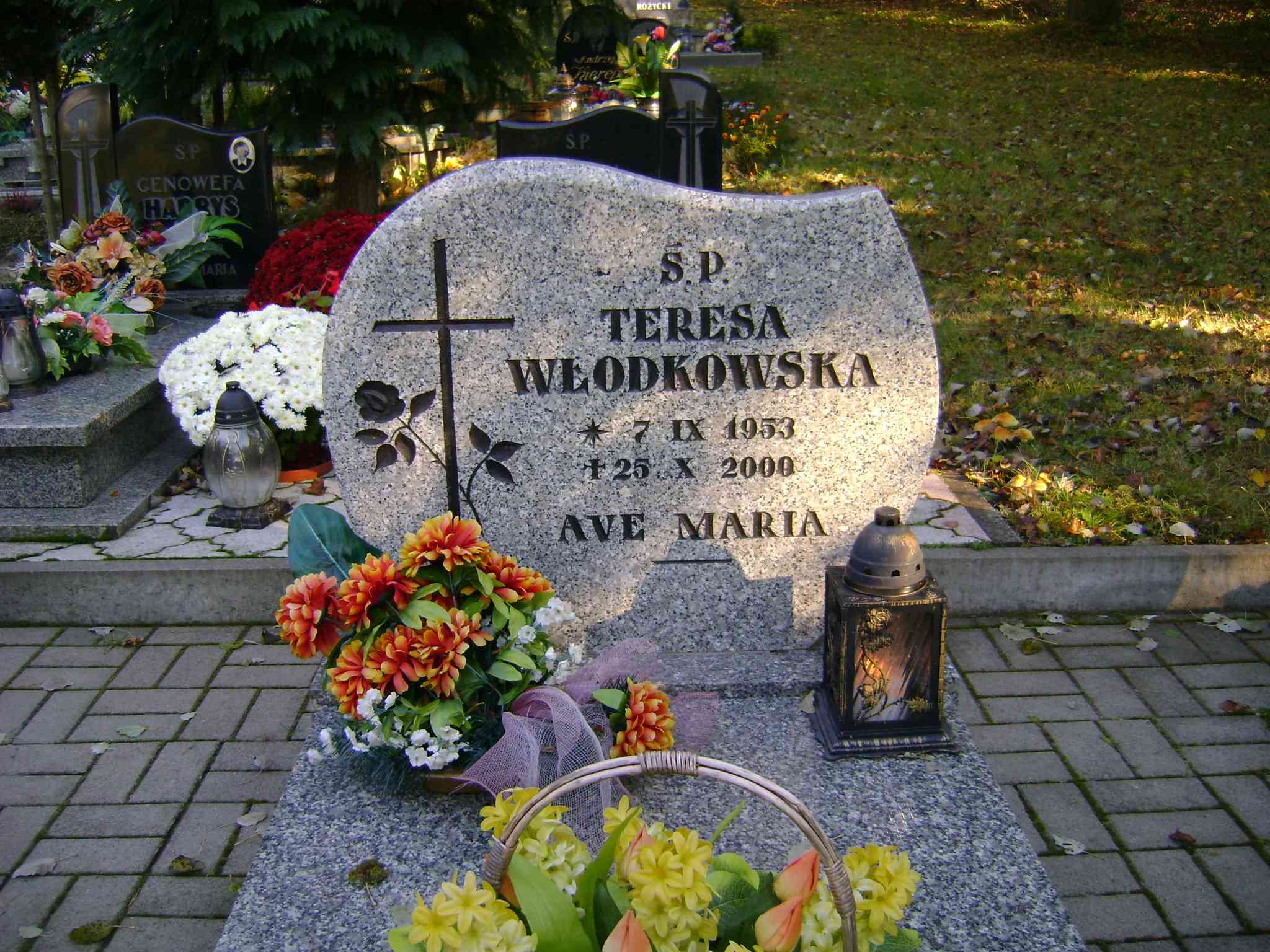 Grób: II.10.21 Włodkowska Teresa ur.:07.09.1953 zm.:25.10.2000 |