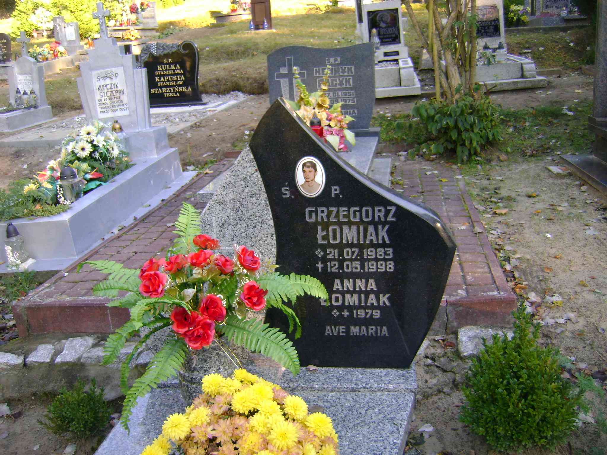 Grób: II.11.14 Łomiak Grzegorz ur.:21.07.1983 zm.:12.05.1998 |