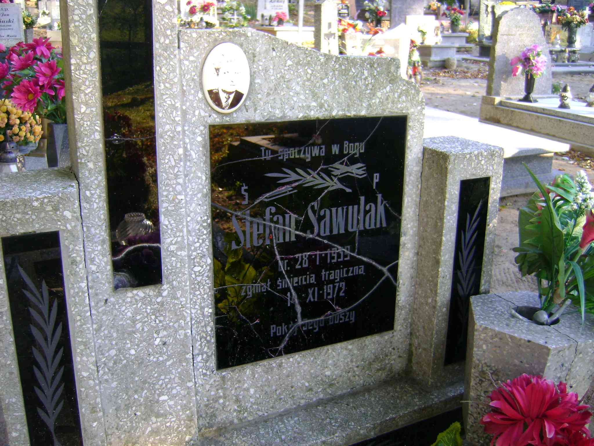 Grób: II.14.1 Sawulak Stefan ur.:28.01.19..9 zm.:14.11.1972 Sawulak Czesława ur.:30.04.1936 zm.:02.11.2015 |