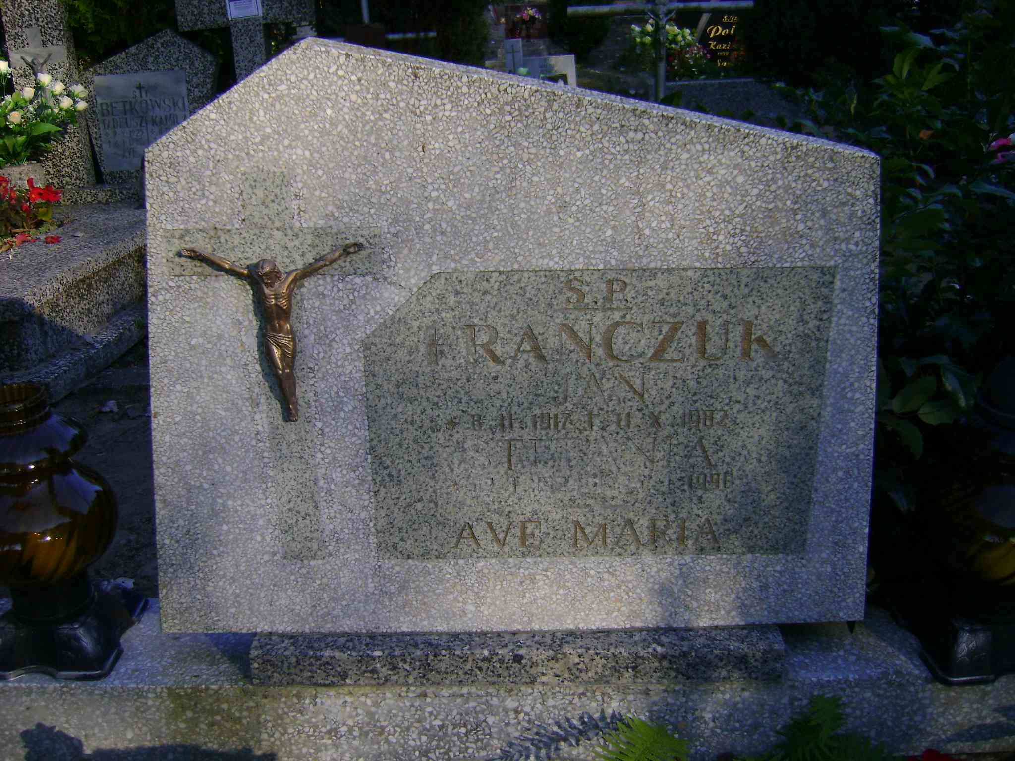 Grób: II.14.8 Franczuk Jan ur.:08.02.1917 zm.:11.10.1982 Franczuk Stefania ur.:12.01.1920 zm.:24.01.1990 |
