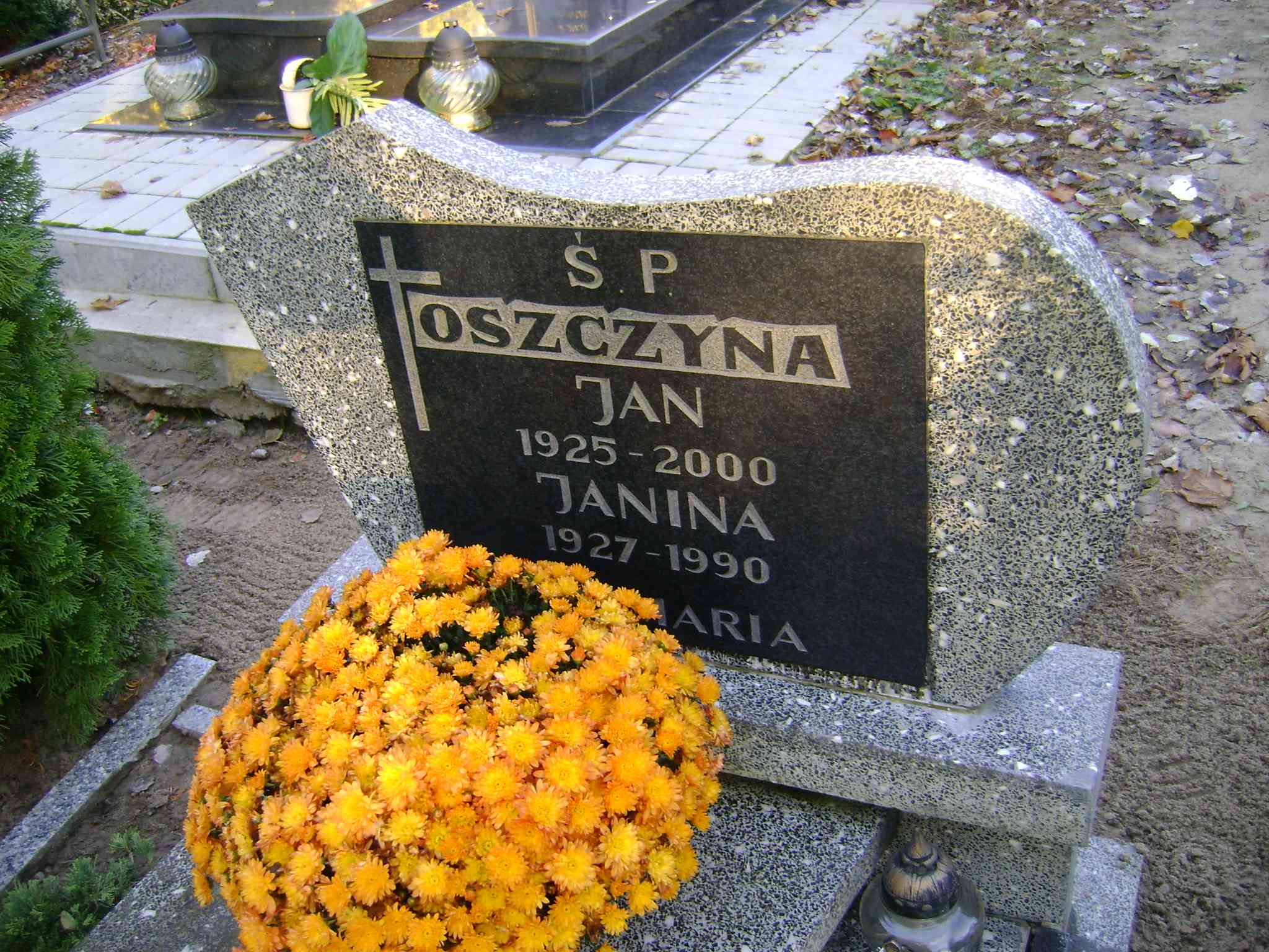Grób: II.15.14 Oszczyna Jan ur.:1925 zm.:2000 Oszczyna Janina ur.:18.09.1927 zm.:29.06.1990 |