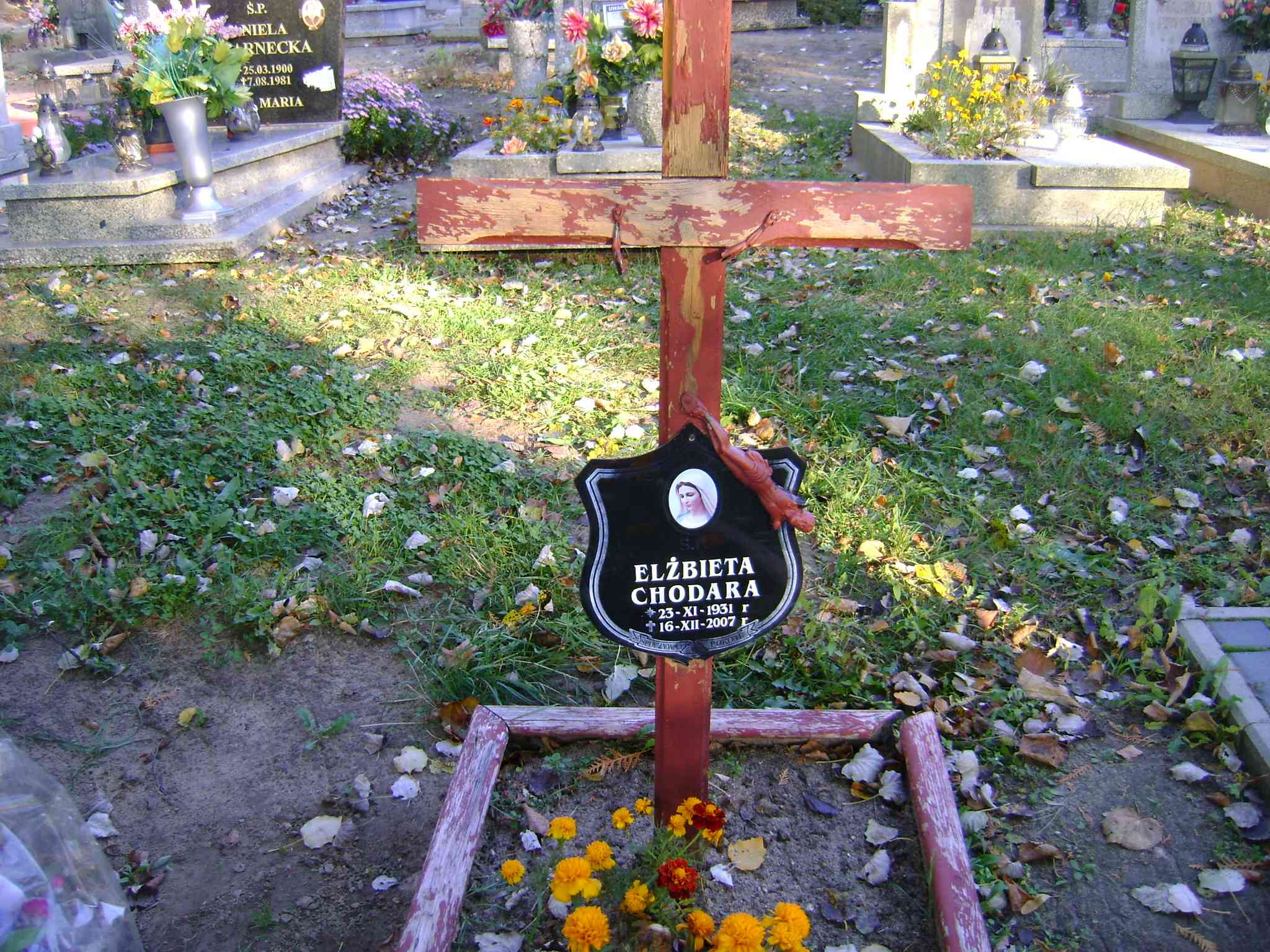 Grób: II.16.7 Chodara Elżbieta ur.:23.11.1931 zm.:16.12.2007 |