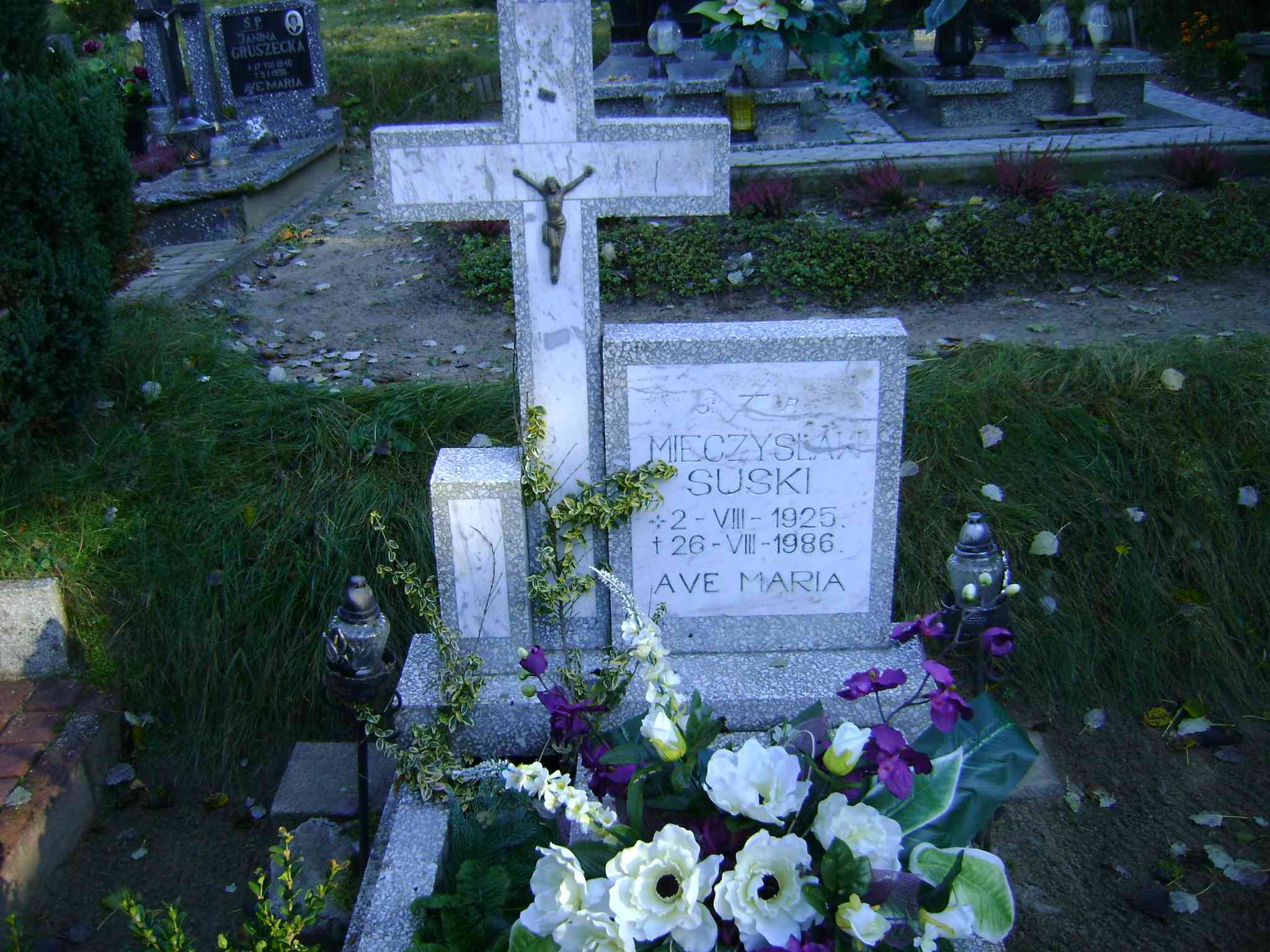 Grób: II.9.15 Suski Mieczysław ur.:02.08.1925 zm.:26.07.1986 Suska Władysława ur.:26.12.1922 zm.:09.04.2015 |