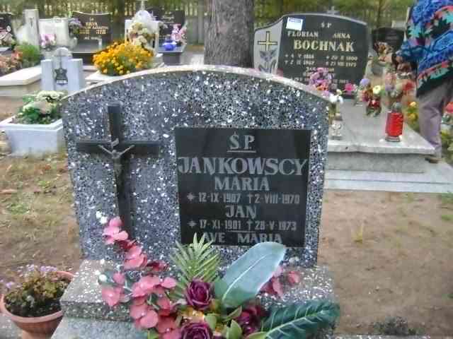 Grób: I.5.2 Jankowski Jan ur.:17.11.1901 zm.:28.05.1973 Jankowska Maria ur.:12.09.1907 zm.:02.08.1970 |