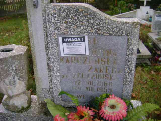 Grób: I.5.20 Karczewska Zaręba Florentyna ur.:12.07.1868 zm.:14.08.1955 |