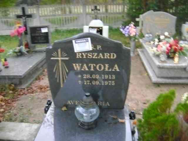 Grób: I.5.29 Watoła Ryszard ur.:28.09.1913 zm.:17.09.1975 |