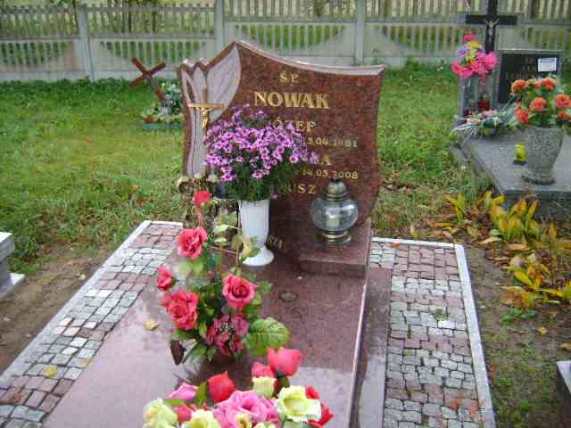 Grób: I.5.31 Nowak Janusz ur.: zm.: Nowak Józef ur.:20.04.1926 zm.:13.04.1981 Nawak Marianna ur.:07.04.1925 zm.:14.03.2008 |