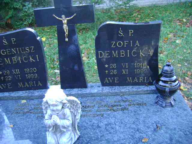 Grób: II.1.15 Dembicki Eugeniusz ur.:29.12.1920 zm.:22.06.1999 Dembicka Zofia ur.:26.06.1919 zm.:26.11.1999 |
