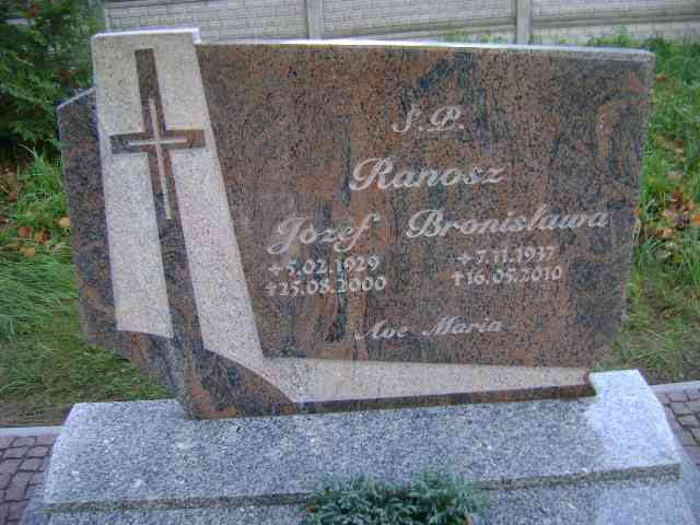 Grób: II.1.18 Ranosz Bronisława ur.:07.11.1937 zm.:16.05.2010 Ranosz Józef ur.:05.02.1929 zm.:25.08.2000 |