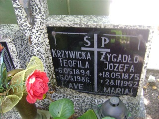Grób: IV.7.2 Krzywicka Teofila ur.:06-05-1894 zm.:05-05-1986 Żygadło Józefa ur.:18-05-1875 zm.:28-11-1952 |