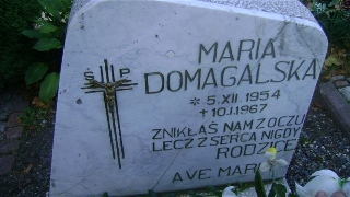 Grób: IX.19.4 Domagalska Maria ur.:05-12-1954 zm.:10-11-1967 Domagalski Teodor ur.:01-07-1930 zm.:20-07-2019 Domagalska Marcela ur.:01-03-1937 zm.:11-11-2019 |