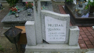 Grób: IX.2.9 Musiał Joanna ur.:24-12-1906 zm.:06-02-1985 Rutkowski Czesław ur.:04-06-1938 zm.:29-09-2016 Rutkowska Krystyna ur.:10-08-1954 zm.:06-02-2021 |
