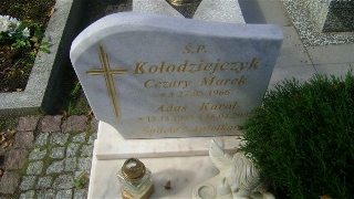Grób: IX.20.15 Kołodziejczyk Cezary ur.:27-05-1966 zm.:27-05-1966 Kołodziejczyk Adam ur.:23-01-1995 zm.:16-04-2002 |