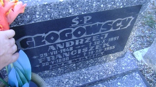 Grób: VII.10.6 Głogowski Franciszek ur.:20-05-1890 zm.:19-12-1955 Głogowski Andrzej ur.:29-07-1948 zm.:30-10-1991 |