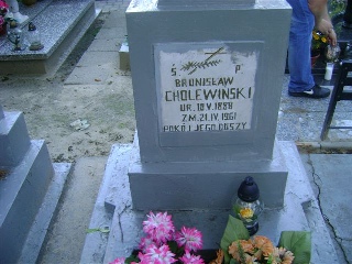 Grób: VIII.12.13 Cholewiński Bronisław ur.:15-05-1888 zm.:20-04-1961 Całko Dominik ur.:25-10-1925 zm.:17-10-2011 |
