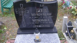 Grób: X.3.9 Pyra Weronika ur.:01-08-1902 zm.:22-12-1980 Pyra Władysław ur.:24-10-1807 zm.:03-10-1999 |
