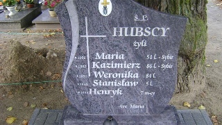 Grób: XIX.8.1 Hubska Maria ur.:__-__-1906 zm.:__-__-1966 Hubska Weronika ur.:18-08-1891 zm.:05-08-1975 Hubski Henryk ur.:__-__-1955 zm.:__-__-1955/6 Hubski Kazimierz ur.:__-__-1892 zm.:__-__-1978 Hubski Stanisław ur.:__-__-1949 zm.:__-__-1954 |