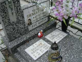 Grób: XV.4.57 Siemiatowski Grzegorz ur.:19-11-1985 zm.:16-12-1985 Siemiatowski Rafał ur.:03-07-1981 zm.:09-07-1981 Rynkiewicz Edward ur.:25-02-1952 zm.:08-06-2019 Rynkiewicz Bogusława ur.:21-04-1950 zm.:13-12-2022 |