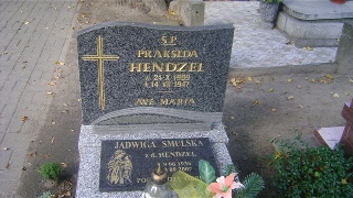 Grób: XVII.23.12 Hendzel Prakseda ur.:24-10-1909 zm.:14-07-1947 Smulska Jadwiga ur.:09-06-1936 zm.:03-09-2007 |