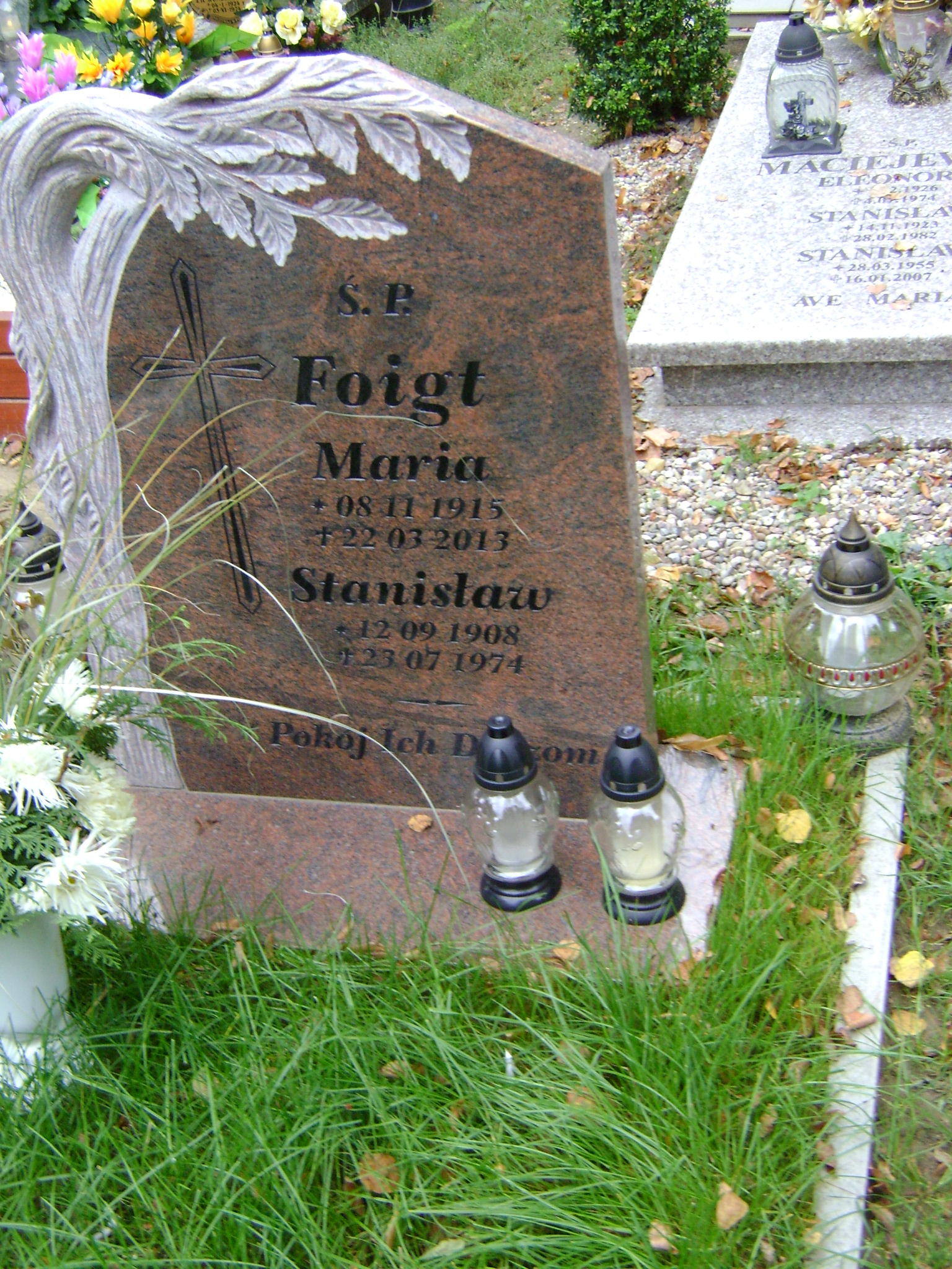 Grób: XX.16.5 Foigt Stanisław ur.:12-09-1908 zm.:23-07-1974 Foigt Maria ur.:08-10-1915 zm.:22-03-2013 |