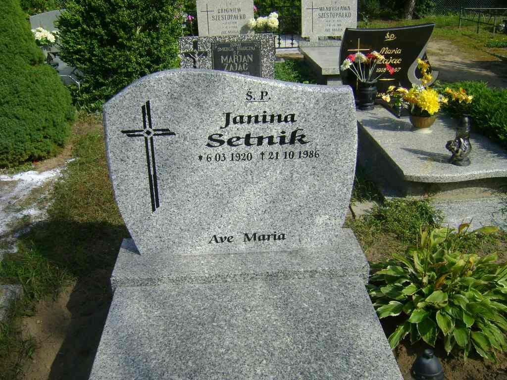 Grób: I.4.23 Setnik Janina ur.:06.03.1920 zm.:21.10.1986 |