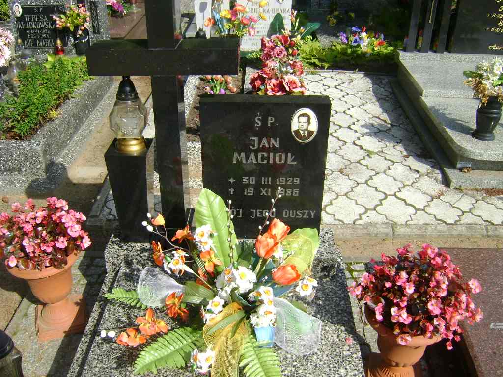 Grób: I.8.2 Macioł Jan ur.:30.03.1928 zm.:19.11.1986 Macioł Stefania ur.:11-10-1931 zm.:25-06-2019 |