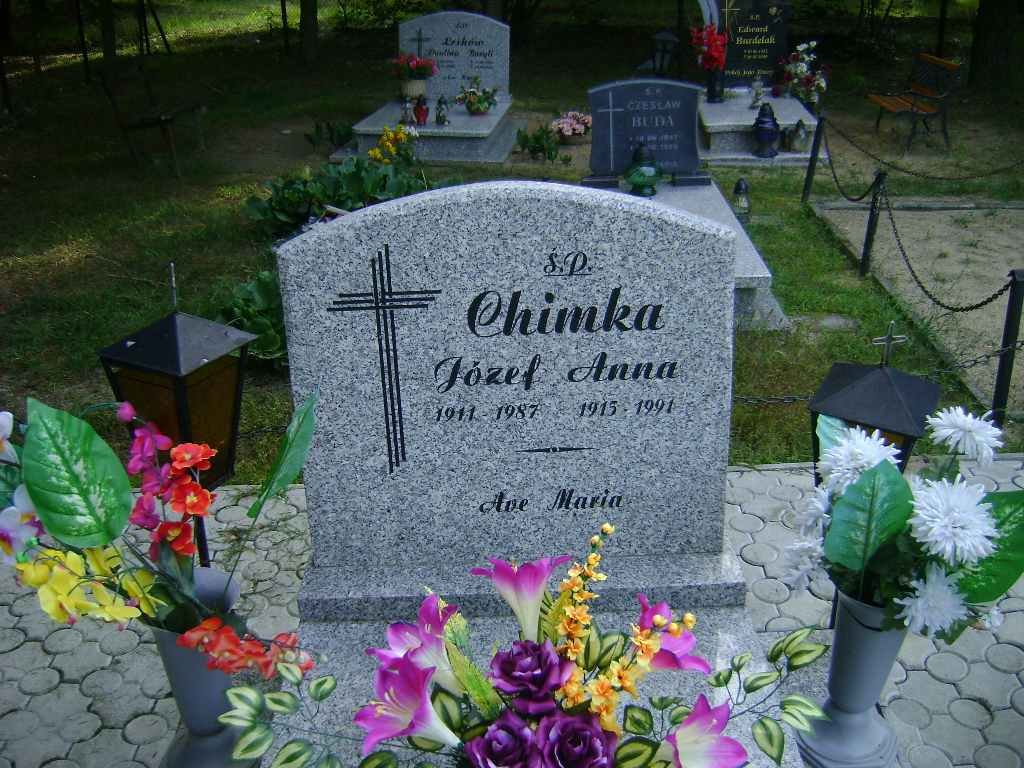 Grób: II.3.1 Chimka Anna ur.:24.02.1915 zm.:23.09.1991 Chimka Józef ur.:__.__.1911 zm.:__.__.1987 |