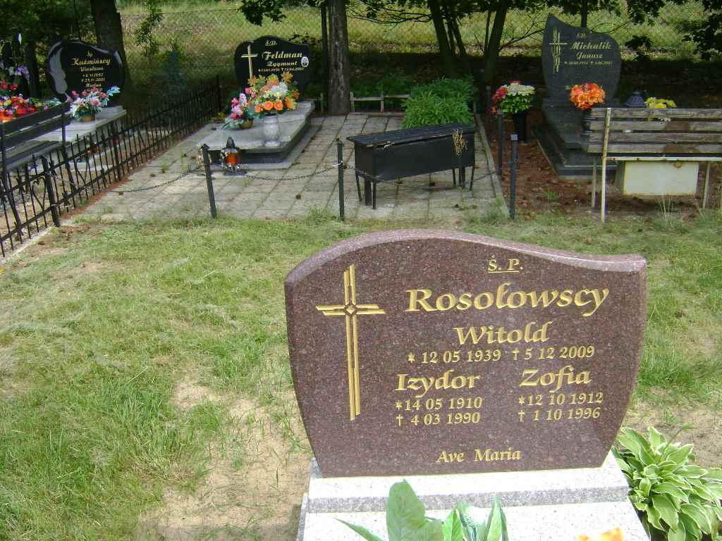 Grób: IX.5.1 Rosłowski Izydor ur.:14.05.1910 zm.:04.03.1990 Rosołowska Zofia ur.:12.10.1912 zm.:01.10.1996 |
