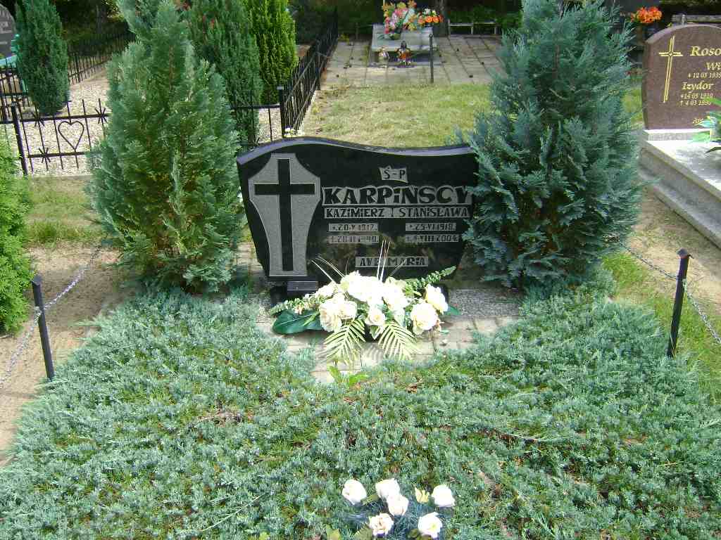 Grób: IX.6.8 Karpiński Kazimierz ur.:20.05.1917 zm.:28.02.1990 Karpińska Stanisława ur.:25.06.1918 zm.:04.08.2004 |
