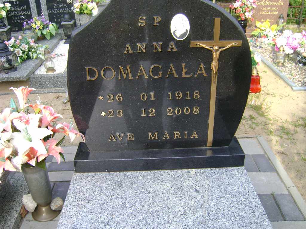 Grób: XIII.4.18 Domagała Anna ur.:1918.01.26 zm.:2008.12.23 |