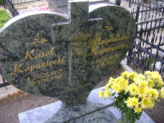Grób: XIV.1.11 Kopaniecki Karol ur.:26.05.1955 zm.:20.09.1998 Kopaniecka Magdalena ur.: zm.:15.05.1982 |