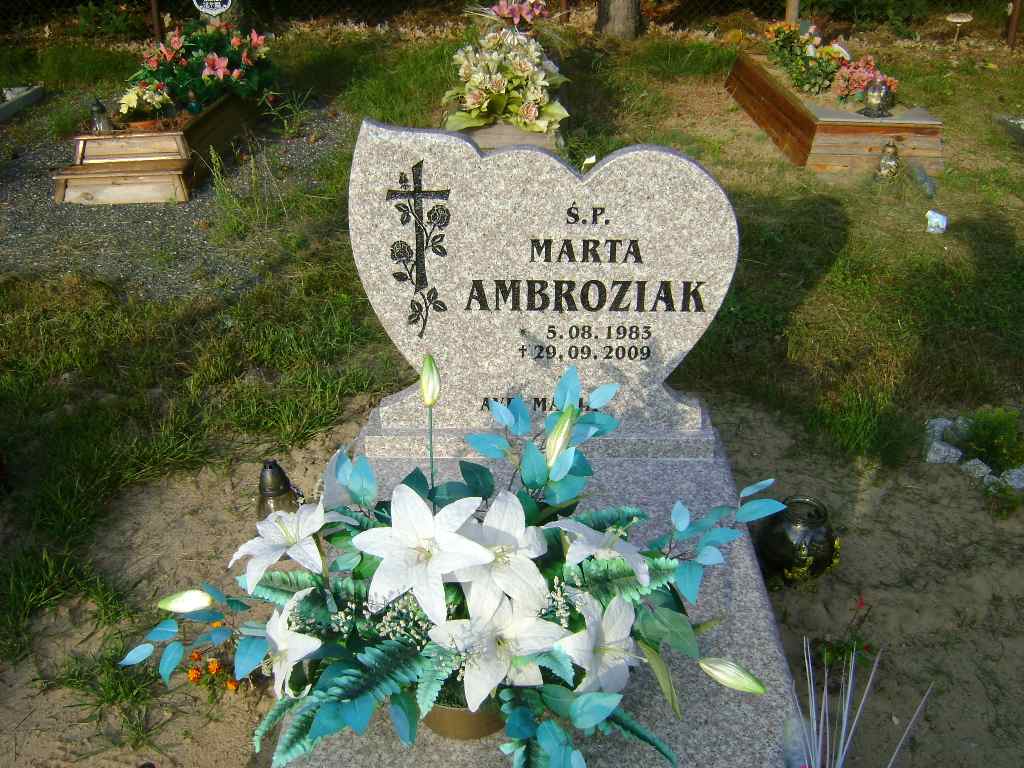 Grób: XIX.2.7 Ambroziak Marta ur.:1983.08.05 zm.:2009.09.29 |