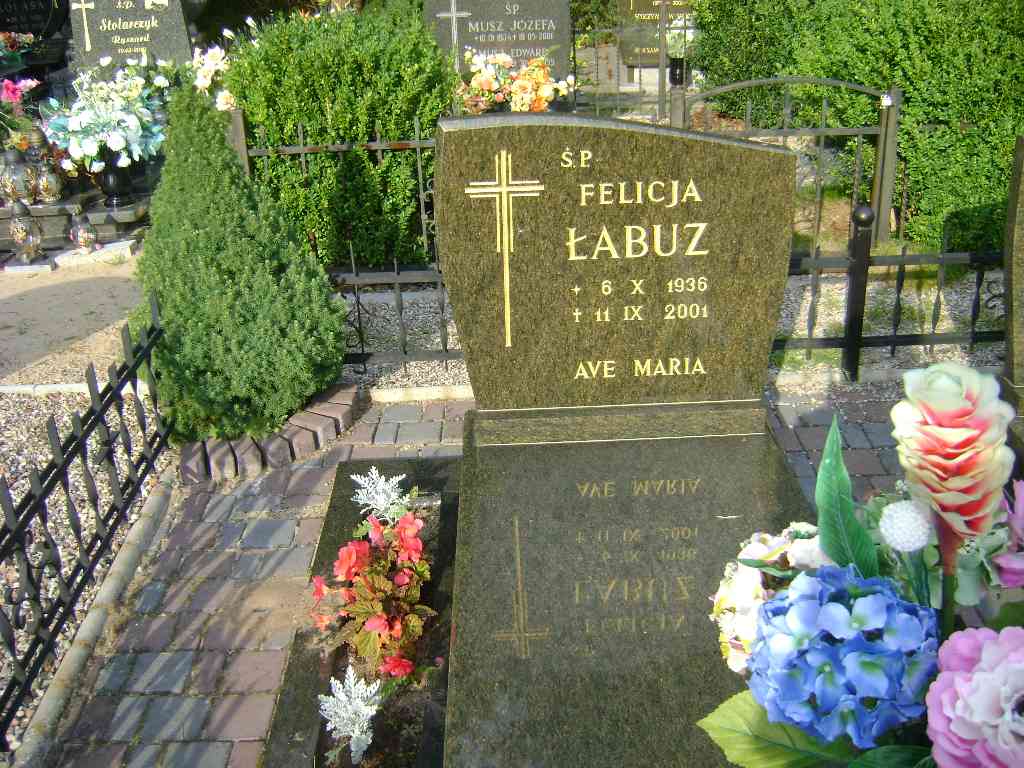 Grób: XV.3.16 Łabuz Felicja ur.:16.10.1936 zm.:11.09.2001 Łabuz Roman ur.:09-11-1958 zm.:05-05-2023 |